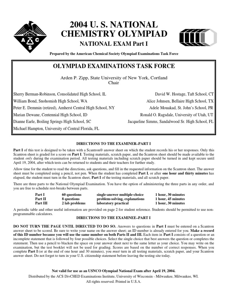 Property of acs usnco not for use as usnco local section exam after march 31 2018 page 3 page 3 directions when you have selected your answer to each question blacken the corresponding space on the answer sheet using a soft 2 pencil.