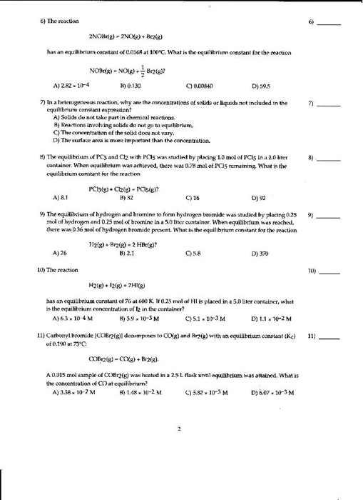 Sample Ap Chemistry Exam Questions D Lougheed 7300 Answers