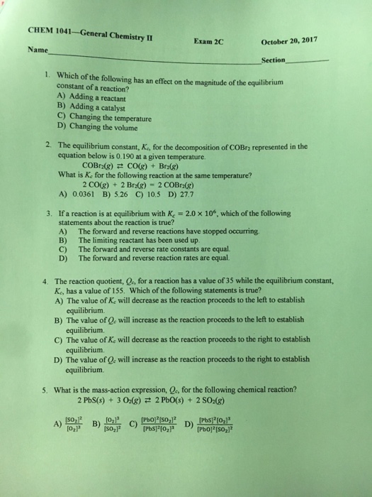 Solved Chem 1041 General Chemistry Ii Exam 2c October 20