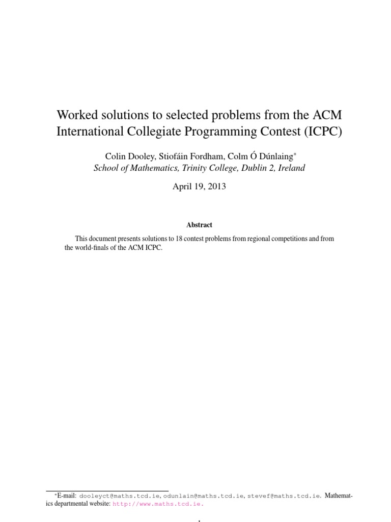 Solutions To Problems That Featured In Acm Icpc Olympics Of