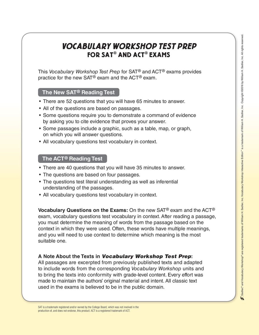 Vocabulary Workshop Test Prep For Sat And Act Exams