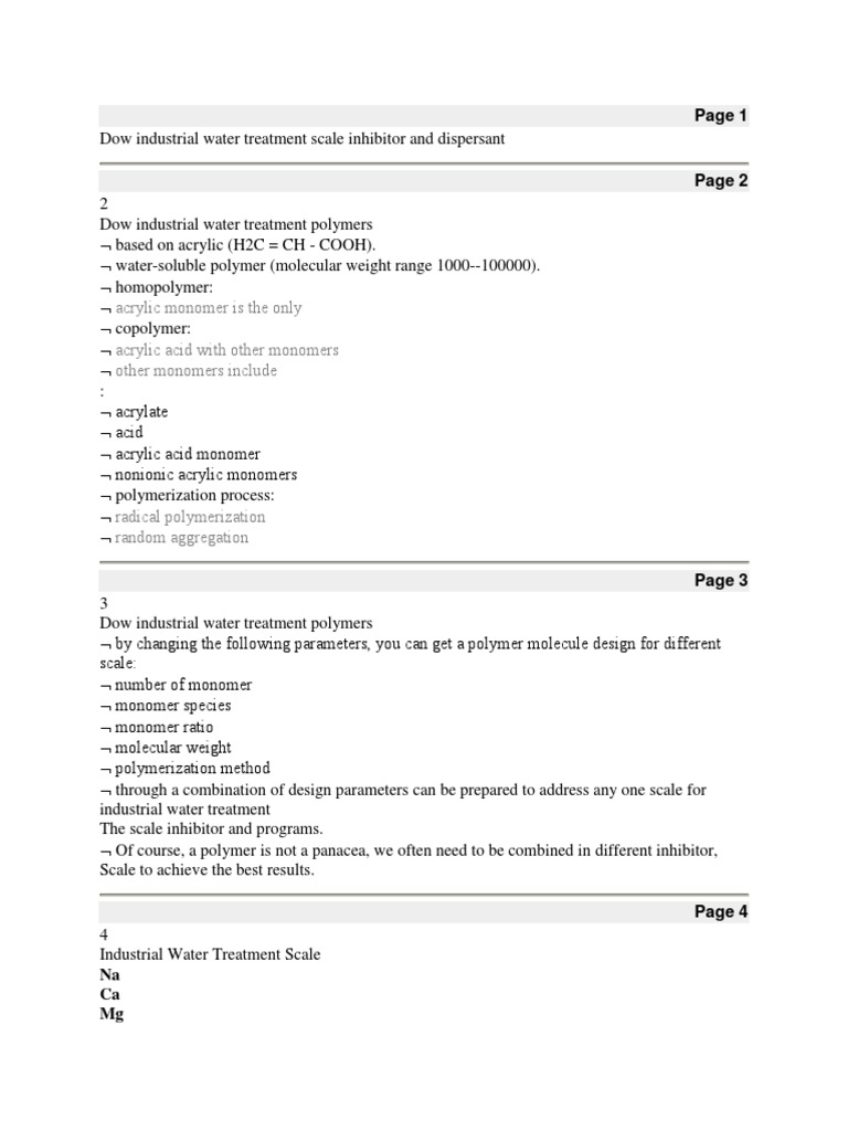 Dow Industrial Water Treatment Scale Inhibitor And Dispersant