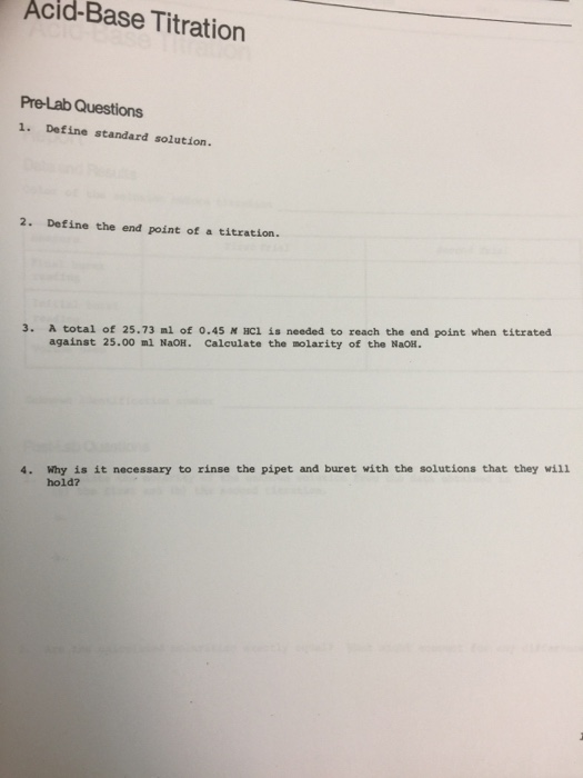 Solved Week 9 Acid Base Titration Pre Lab Questions Due