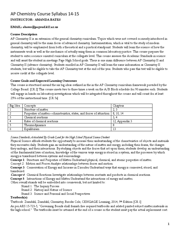 Ap Chem Syllabus Submission Chemical Bond Chemical Reactions