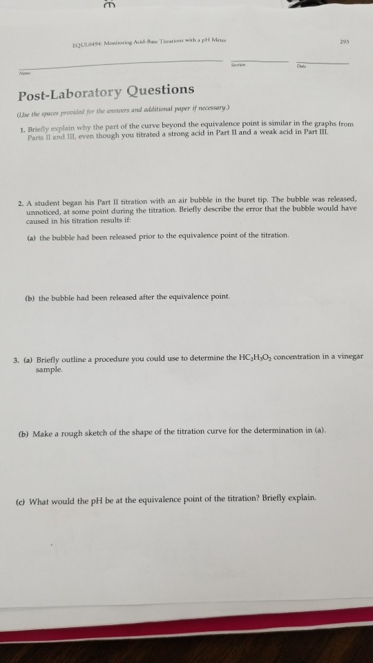 Solved 5 Acid Base Titration Curves Name Section Pre Lab