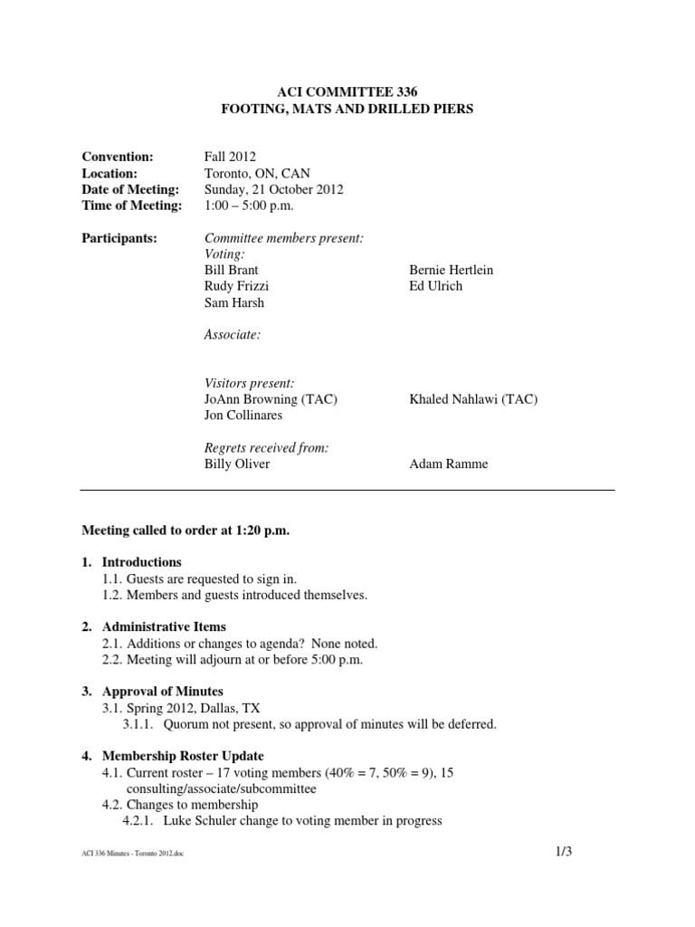 Meeting Minutes Aci Committee 336 Footings Mats And Drilled Piers