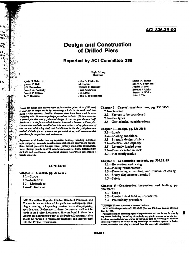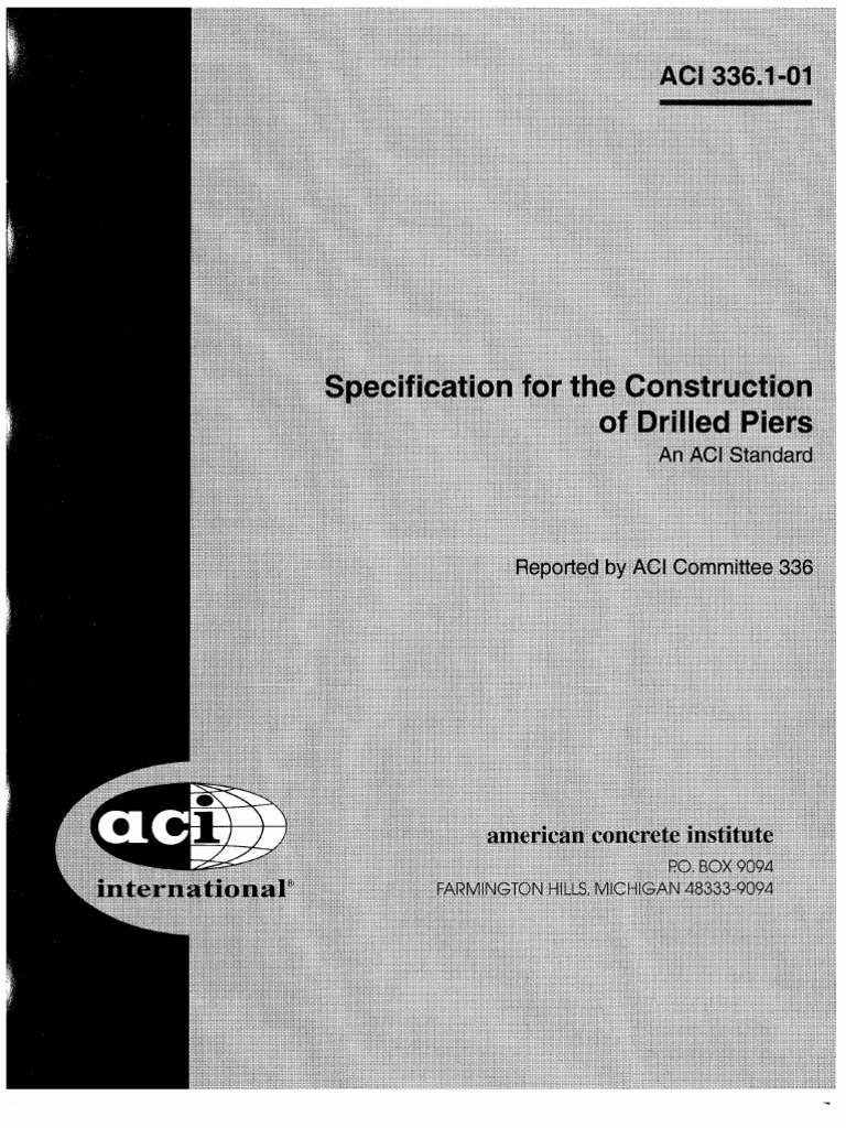 336 1r 01 Specification For The Construction Of Drilled Piers Aci