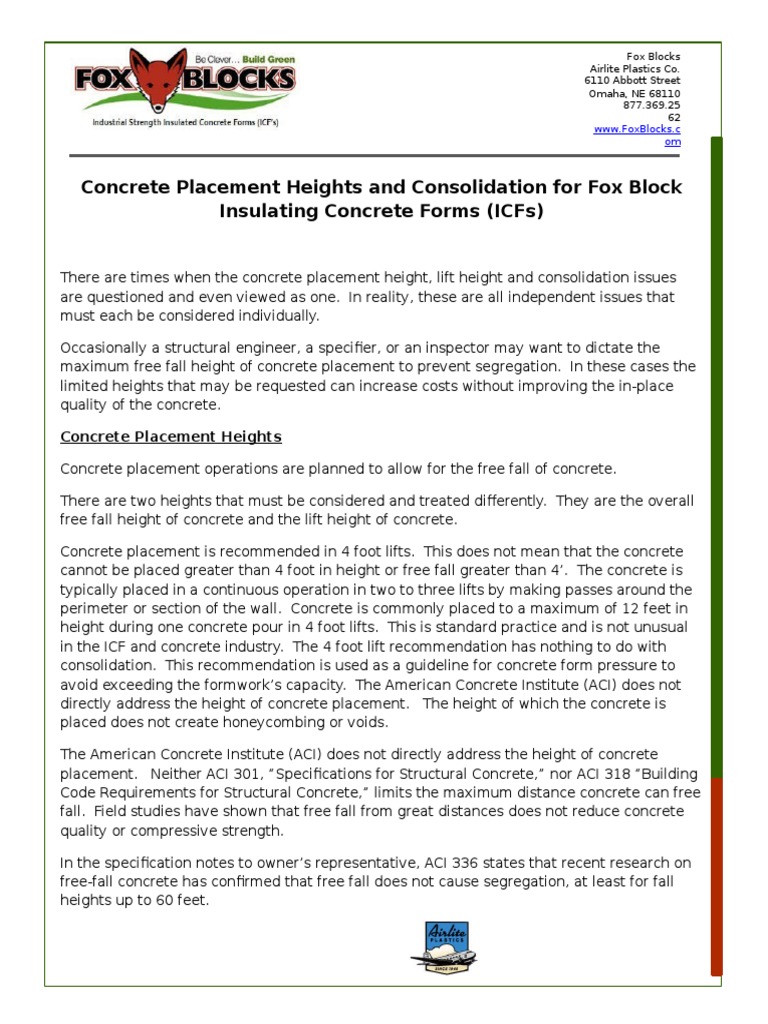 Concrete Placement Heights And Consolidation
