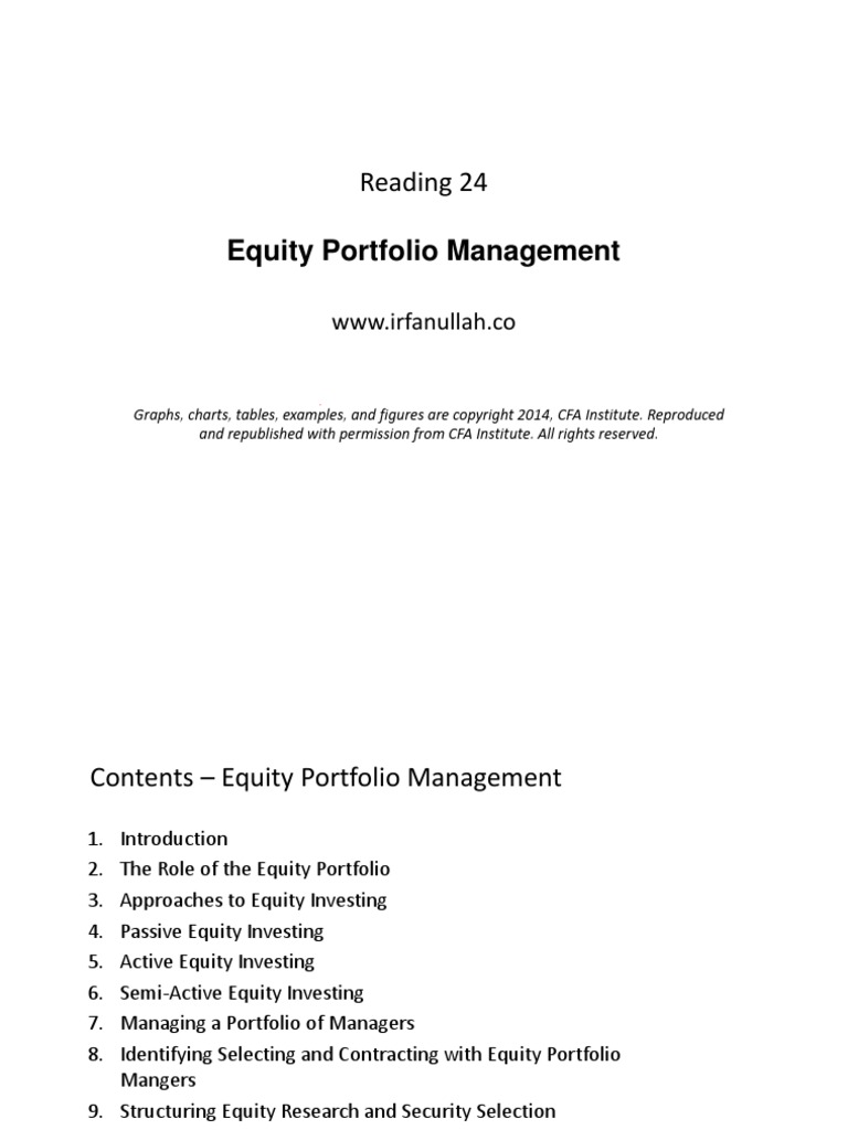 2018 L3 Ss12 Pdf 12 Study Session Equity Portfolio Management
