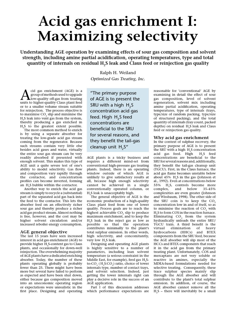 Acid Gas Enrichment Maxim Select Gases Chemical Equilibrium