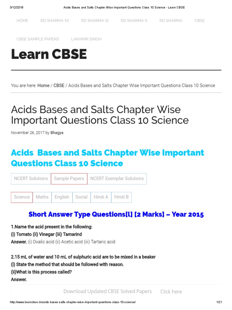 Acids bases and salts questions answers. I hope all these self assessment quizzes and work sheets will prove useful whatever course you are doingscroll down to see whats on offer and fh means differentiation for uk gcseigcse foundationhigher level tier quizzes it basically means easier on limited knowledge and harder on wider ranging questions. Ncert solutions for class 10th. Download cbse class 10 chemistry worksheet acids bases and salts in pdf questions answers for chemistry cbse class 10 chemistry worksheet acids bases and salts practice worksheets for cbse students.