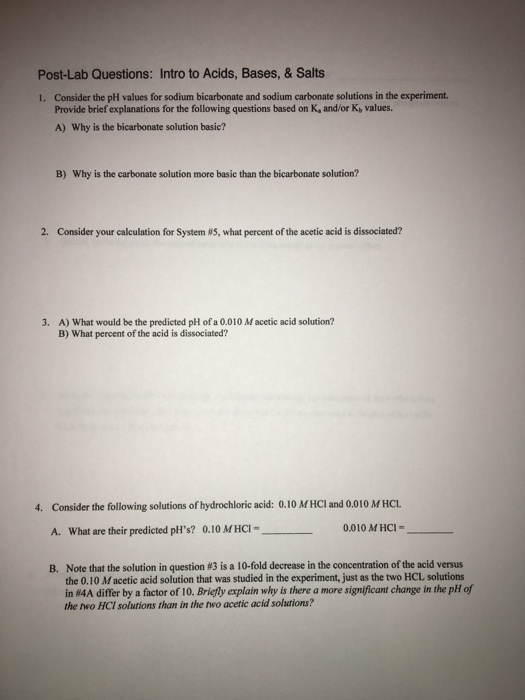 Solved Post Lab Questions Intro To Acids Bases Salts
