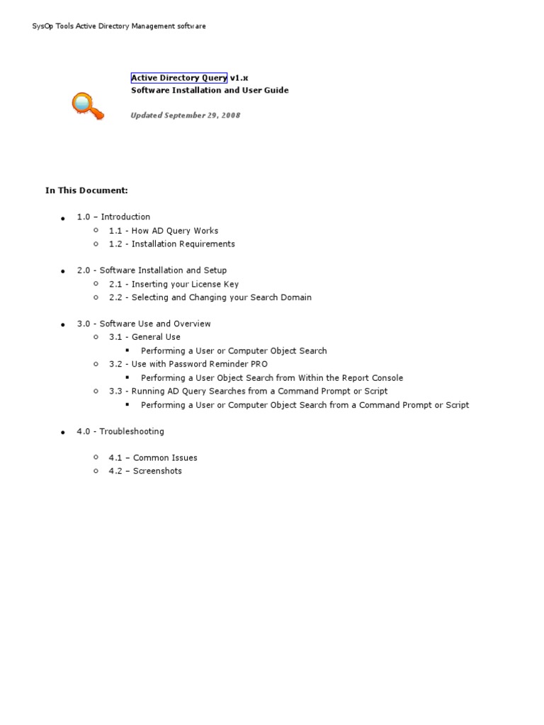 Ad Query User Guide Active Directory Domain Name