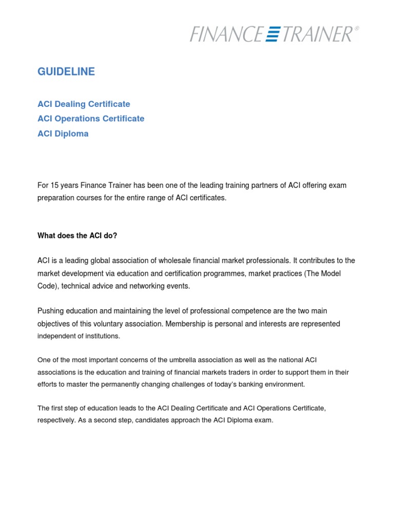 Aci Dealing Certificate Aci Financial Markets Association Acifma
