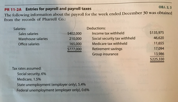 Solved Obj 2 3 Pr 11 2a Entries For Payroll And Payroll