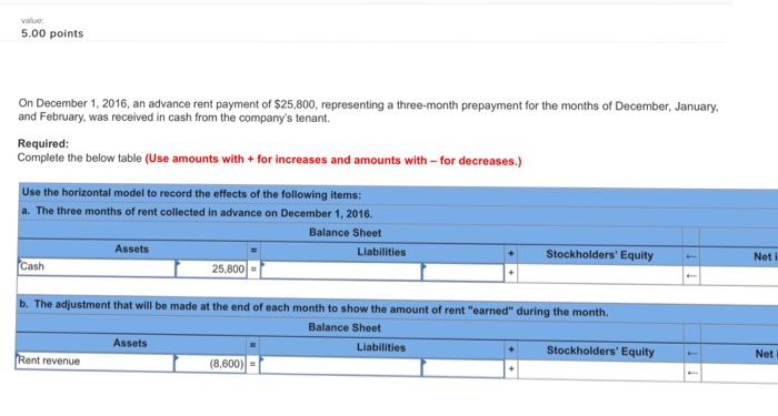 Solved Value 5 00 Points On December 1 2016 An Advance