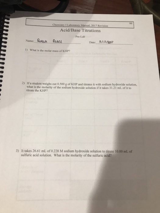Solved Chem 1211l Lab Manual Page 90 Acid Base Titration
