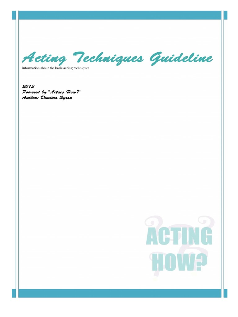Acting Techniques Guideline Acting How Pdf